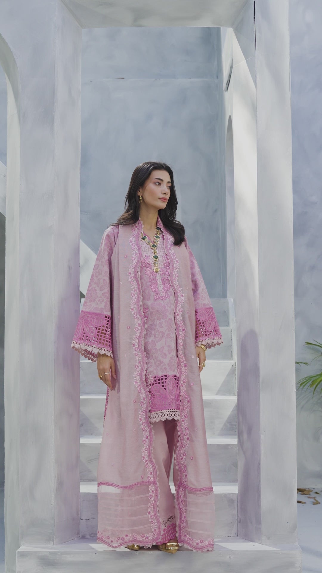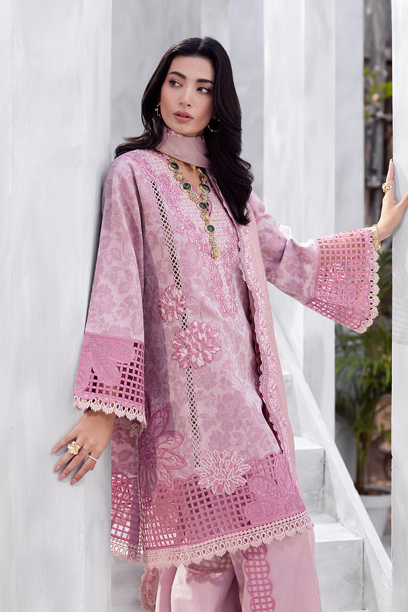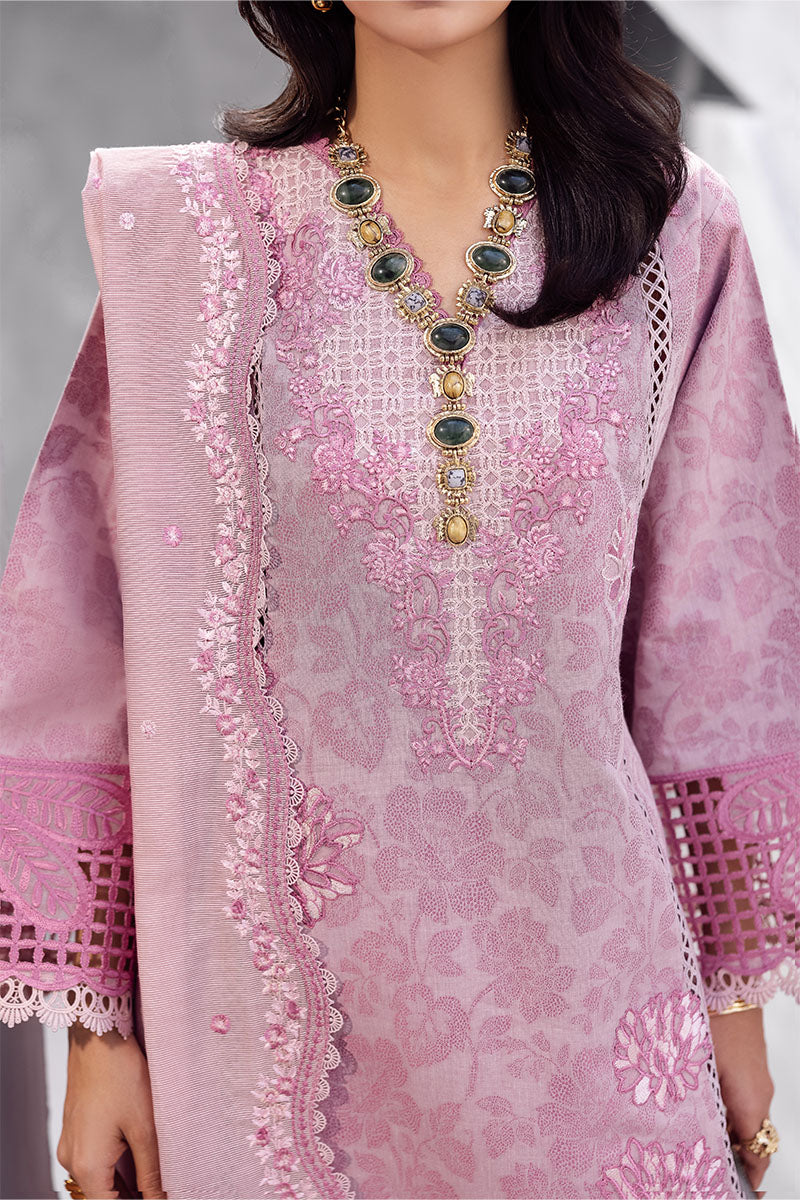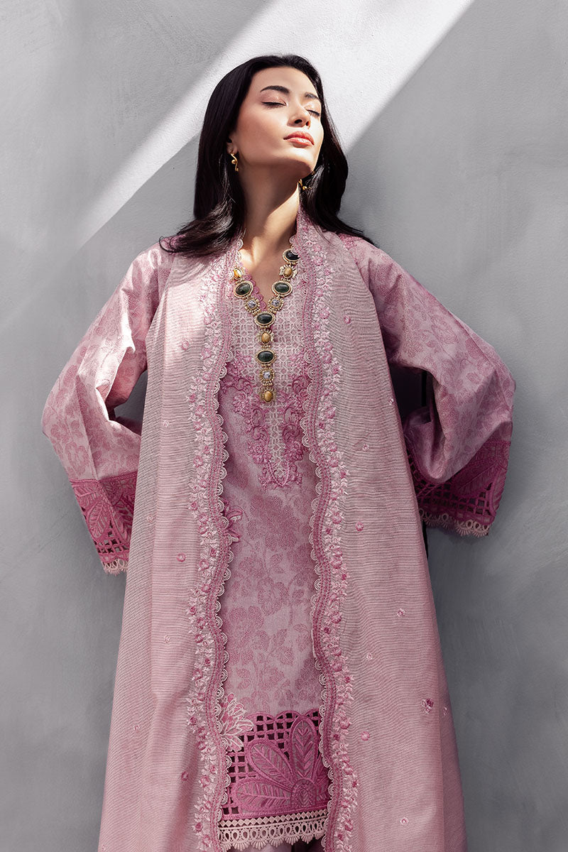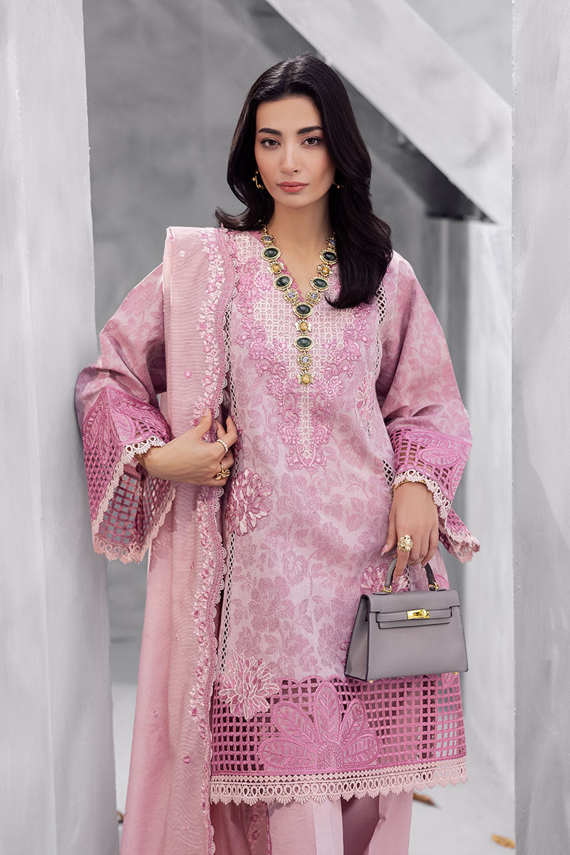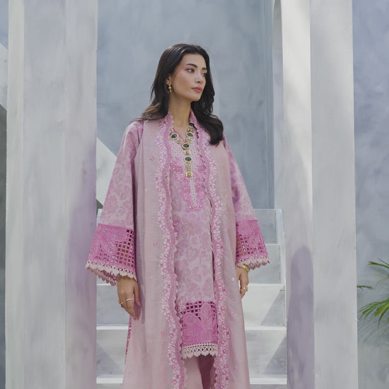 Amayra — grace in every gentle hue. Draped in a soft tea pink tone, Amayra blends classic femininity with refined craftsmanship. The intricately embroidered lawn shirt and dyed cotton trousers, paired with a beautifully detailed dyed nylon viscos dupatta, featuring a delicate border that adds just the right touch of elegance. A timeless ensemble for effortless daywear luxury