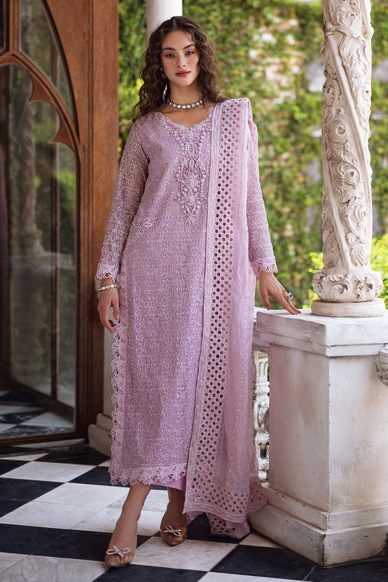 Shirin, where every stitch paints a picture of refinement and beauty. Adorned with intricate Chikankari embroidery and delicate sequins, it is a masterpiece of elegance. The raw silk pants, Chikankari embroidered shirt with light sequins, chain, crystal buttons, milk lace insertions and borders, add a touch of enchanting charm, making every moment a treasured memory. This is a 3 pc outfit.