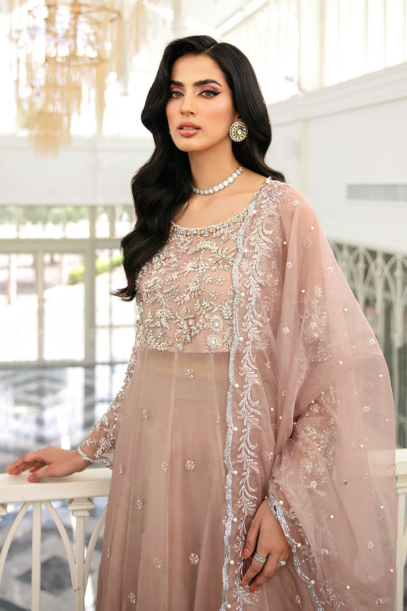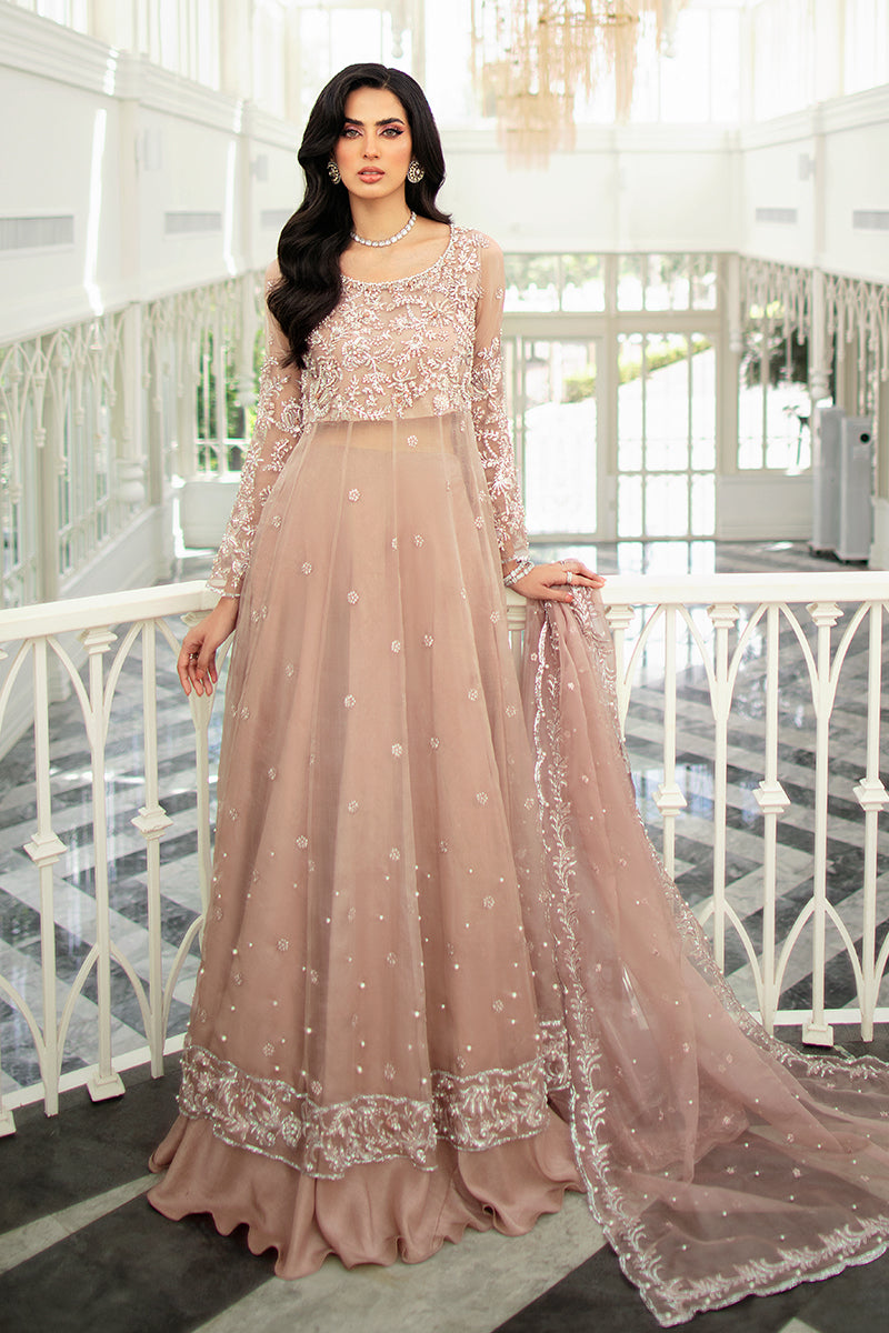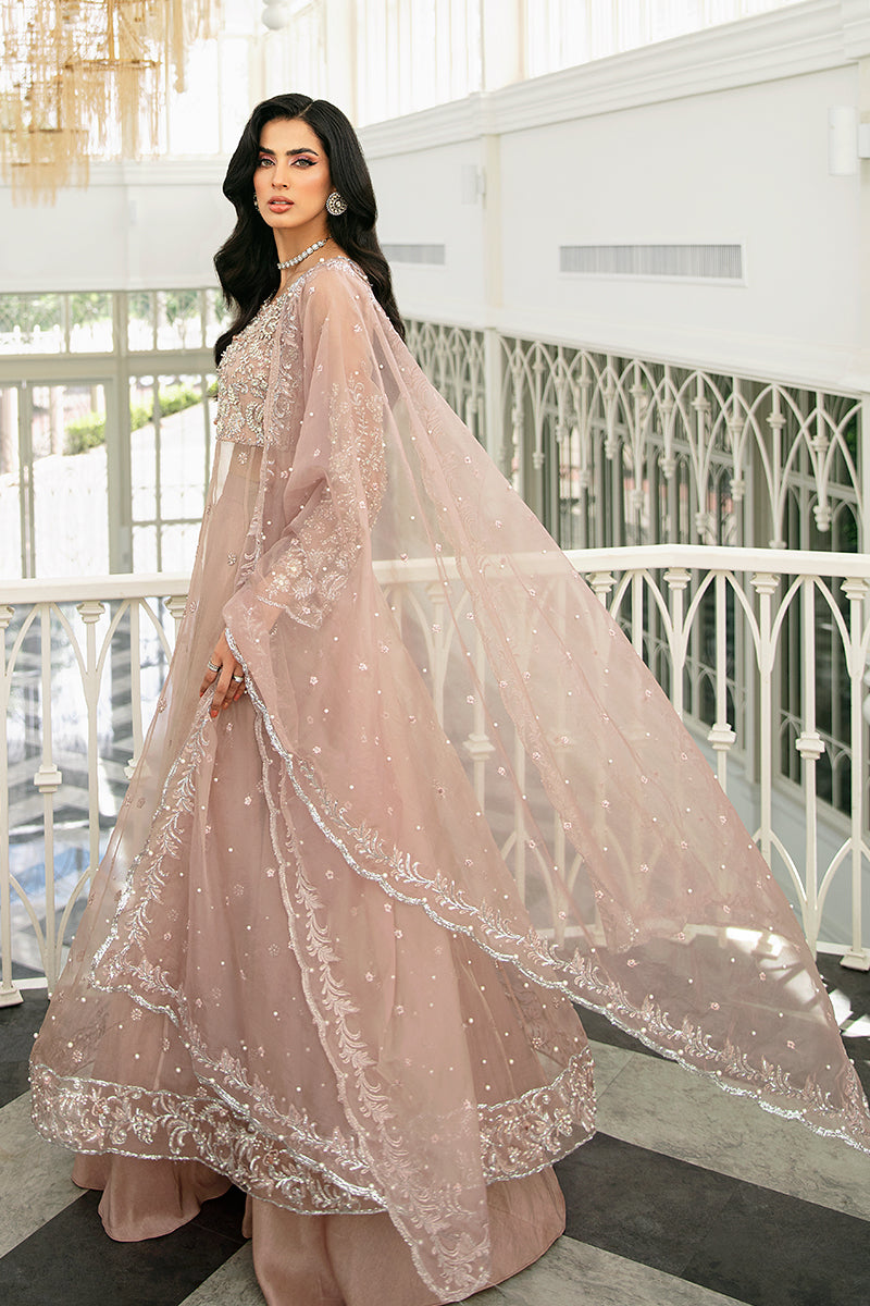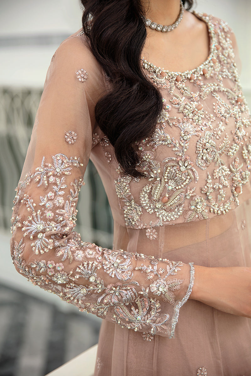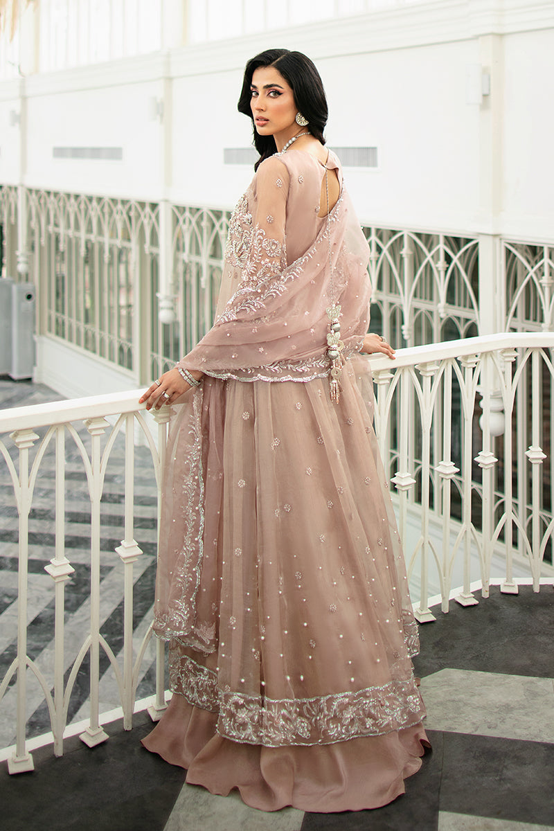 A glamorous pale peach creation from our collection, "Celine" is truly timeless. Radiating nothing but opulence through its heavily decked bodice accompanied by subtle embellishments on the daman and dupatta. Crafted on a pale peach organza canvas this outfit is nothing but a show-stopper.