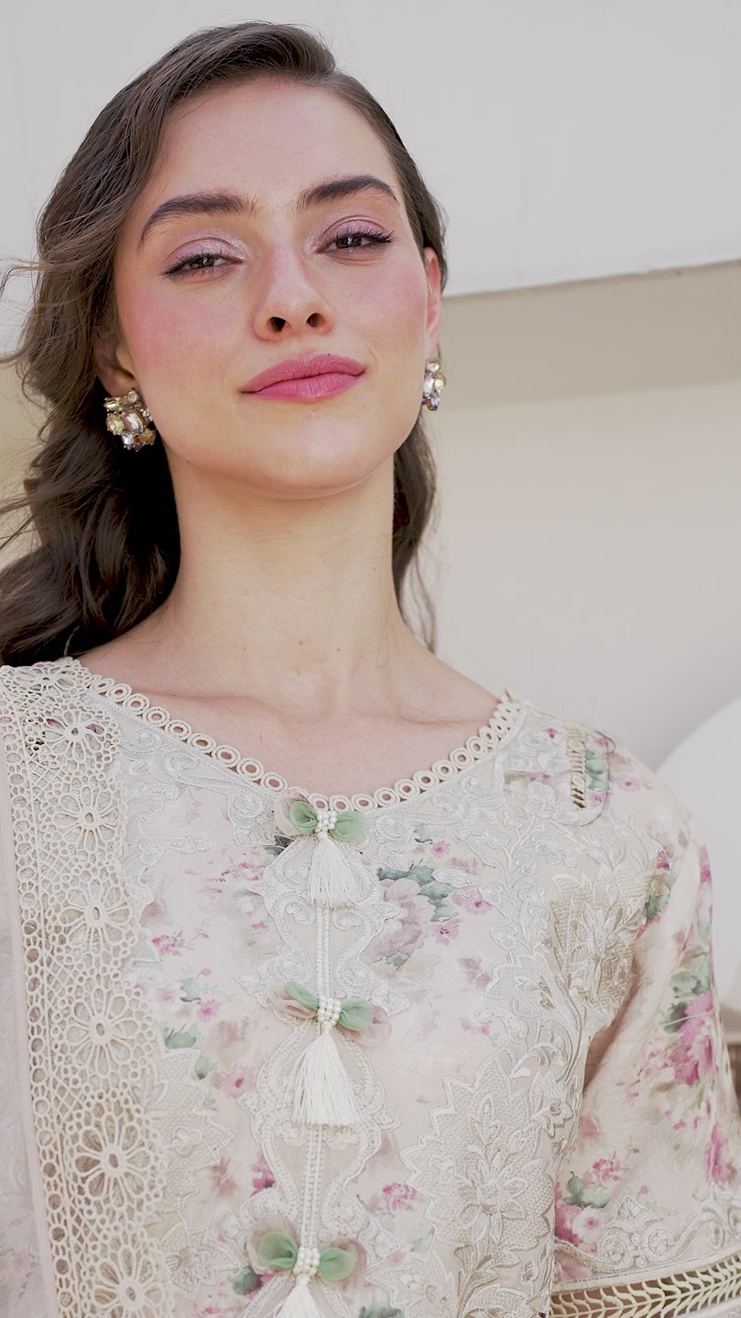 All laces used for finishing of the stitched outfit especially the dupatta or trousers may vary from the shoot.