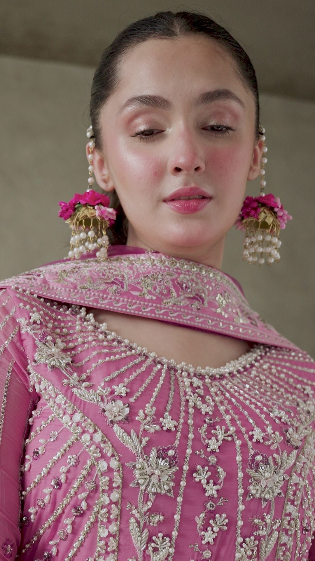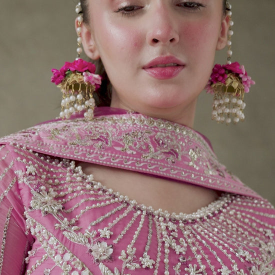 Elevate your style with the Dua outfit in enchanting shades of pink. This stunning piece features hand-embellished details on airy chiffon, creating a beautifully textured look. The ensemble is completed with a net dupatta, rich in intricate embroidery and sequins, adding a layer of dazzling sophistication.