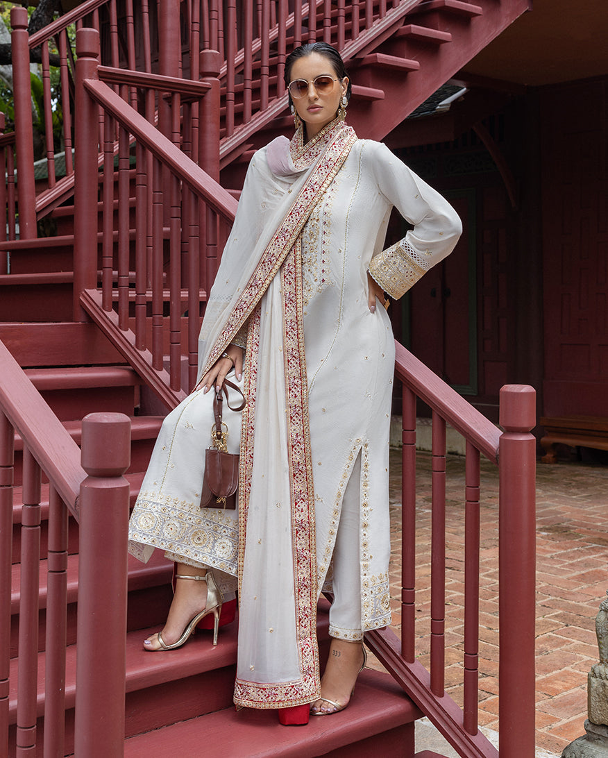• Embroidered, sequined 4 side dupatta border (silk)