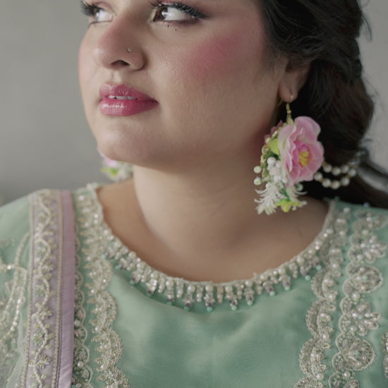Unveil sophistication with Faiza. This exquisite piece features hand-embellished details on lush chiffon, creating a luxurious and intricate texture. Complemented by a net dupatta, adorned with elaborate embroidery and sequins, the ensemble exudes elegance and grace.