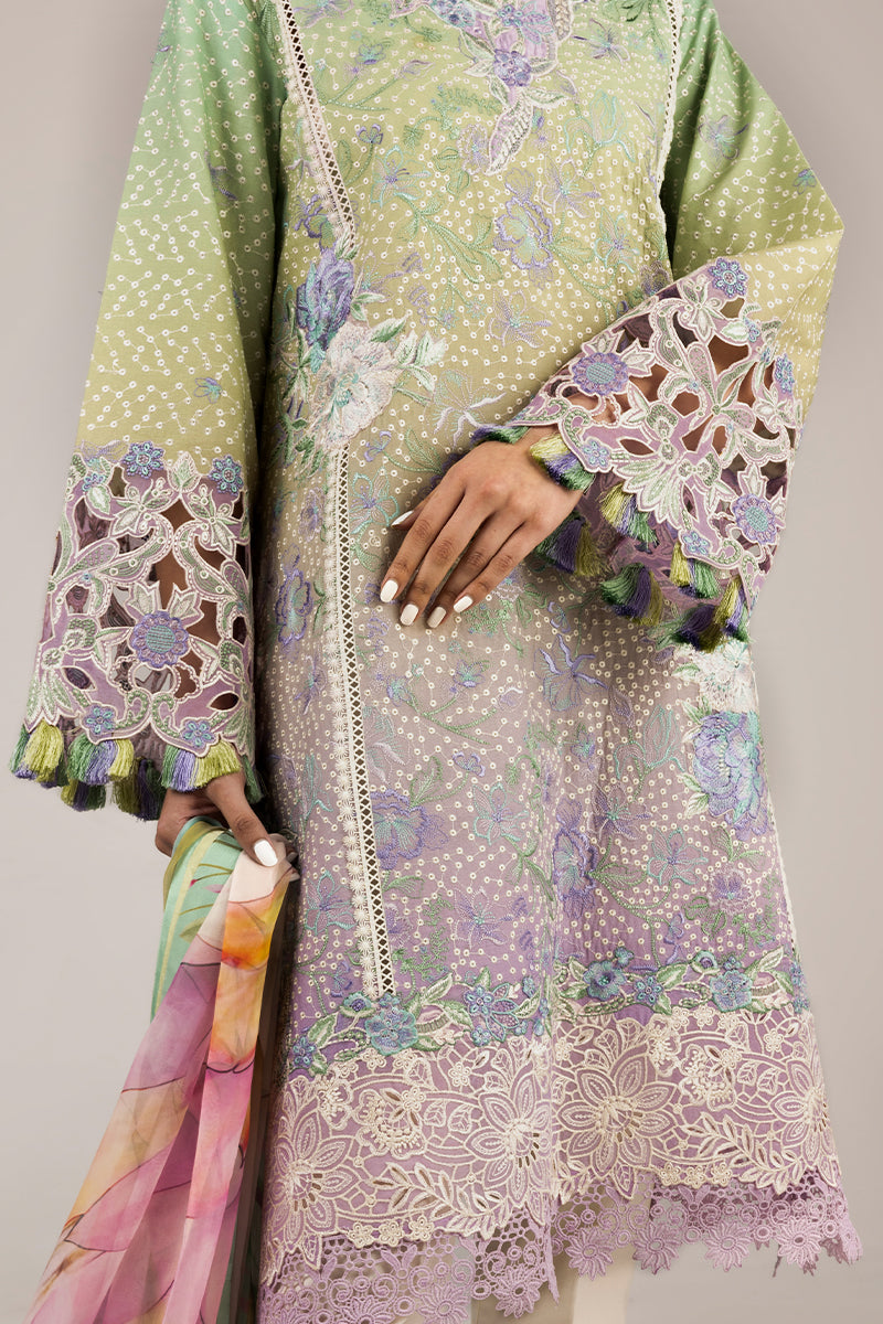 All laces used for finishing of the stitched outfit especially the dupatta or trousers may vary from the shoot.