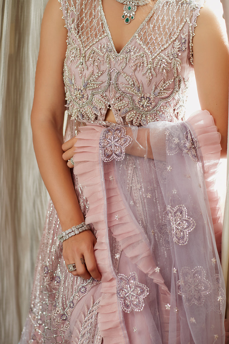-Embroidered and sequinned sleeves net Embroidered, sequinned and pearl embellished back daman border organza