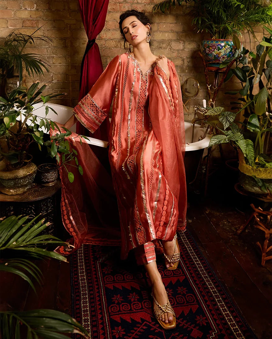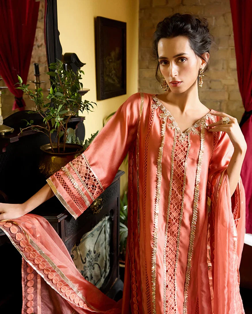 A tribute to timeless Punjabi traditions. Adorned with intricate gota work, this ensemble is a celebration of elegance.