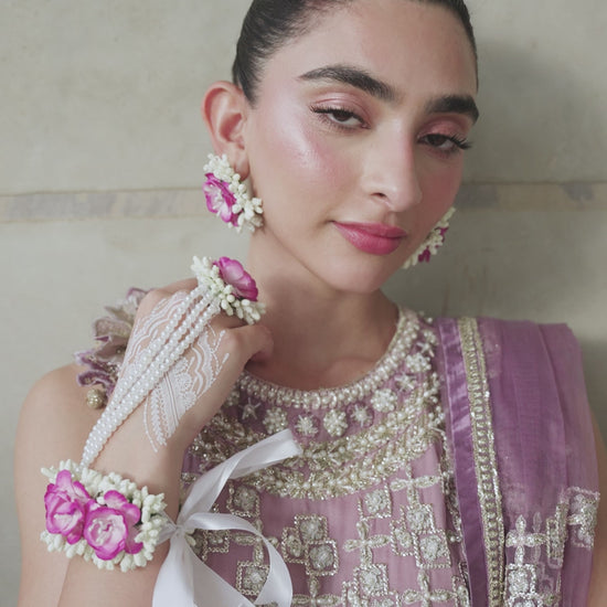 Experience the allure of the Sana outfit in delicate lilac. This enchanting ensemble features hand-embellished details on flowing chiffon, creating a refined and ethereal look. The outfit is beautifully finished with a net dupatta, intricately embroidered and embellished with sequins, adding a touch of sparkling elegance. Ideal for those moments when you want to radiate grace and sophistication.