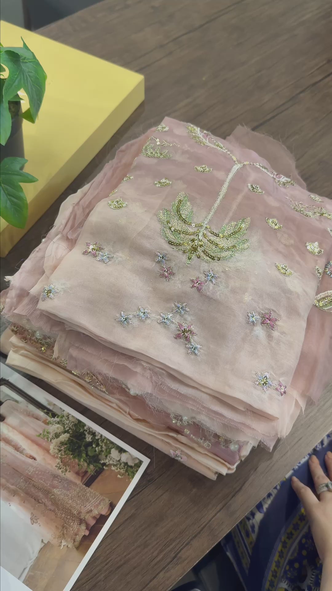 • Embroidered, sequinned pearl embellished back daman border (organza)