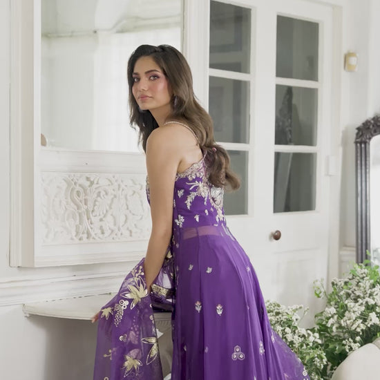 • Embroidered, sequinned pearl embellished front daman border (organza)