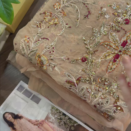 All laces used for finishing of the stitched outfit especially the dupatta or trousers may vary from the shoot.