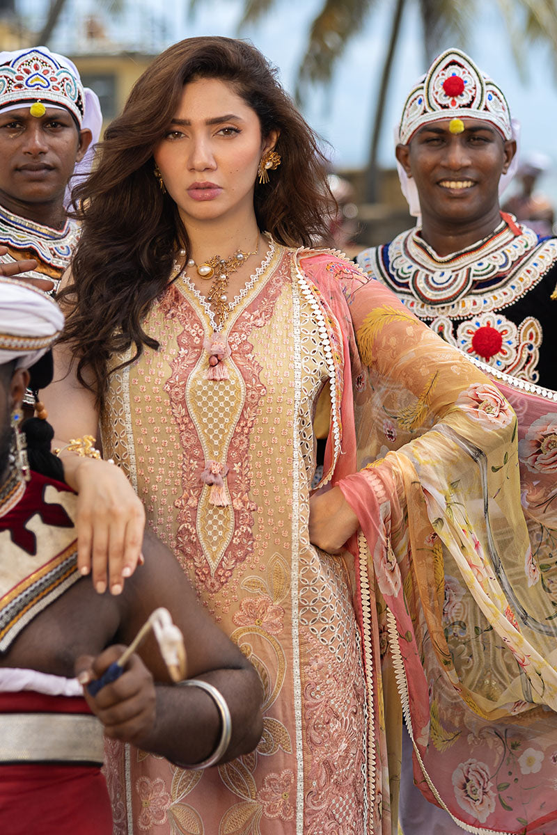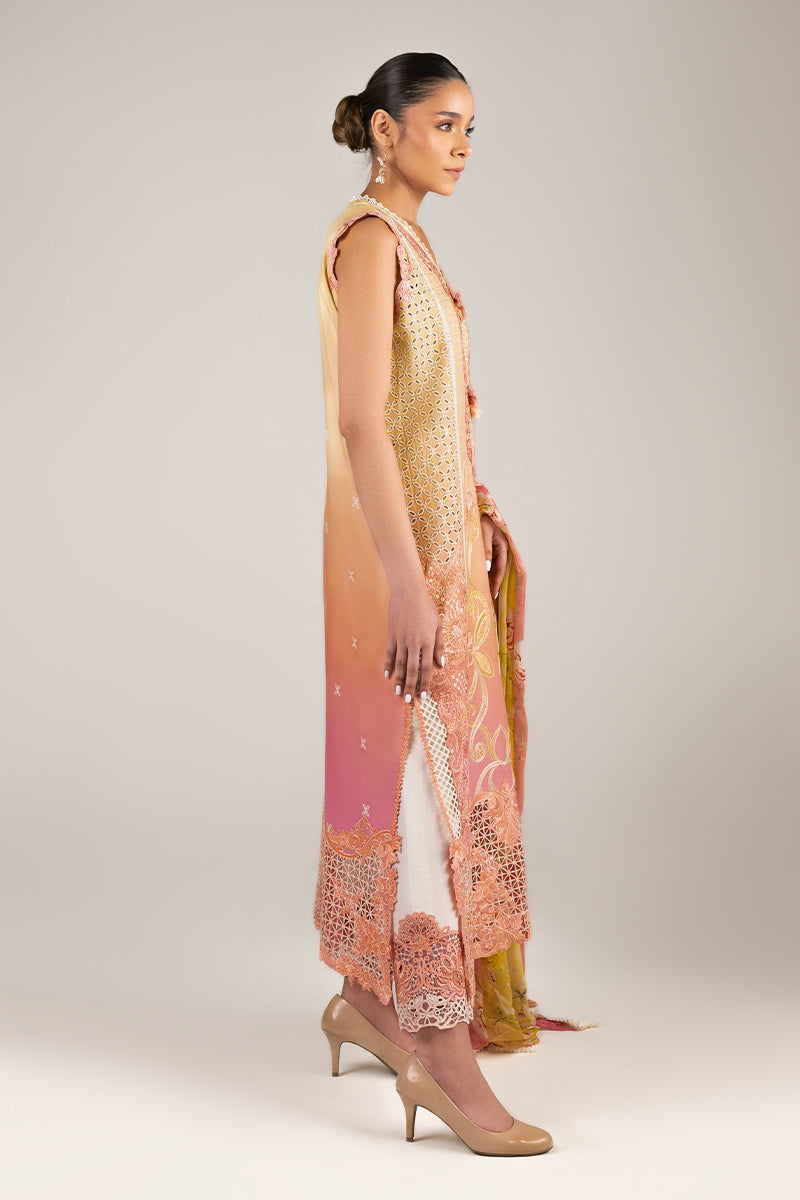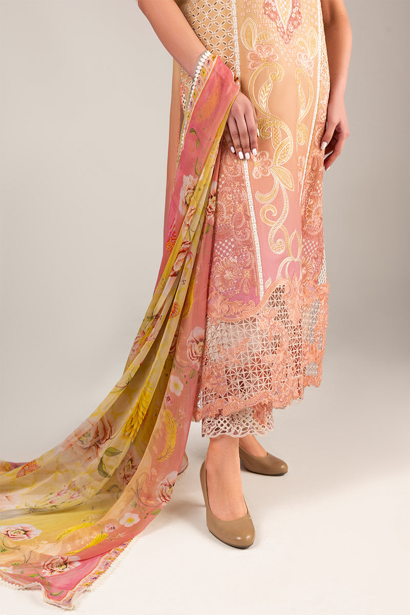 All laces used for finishing of the stitched outfit especially the dupatta or trousers may vary from the shoot.