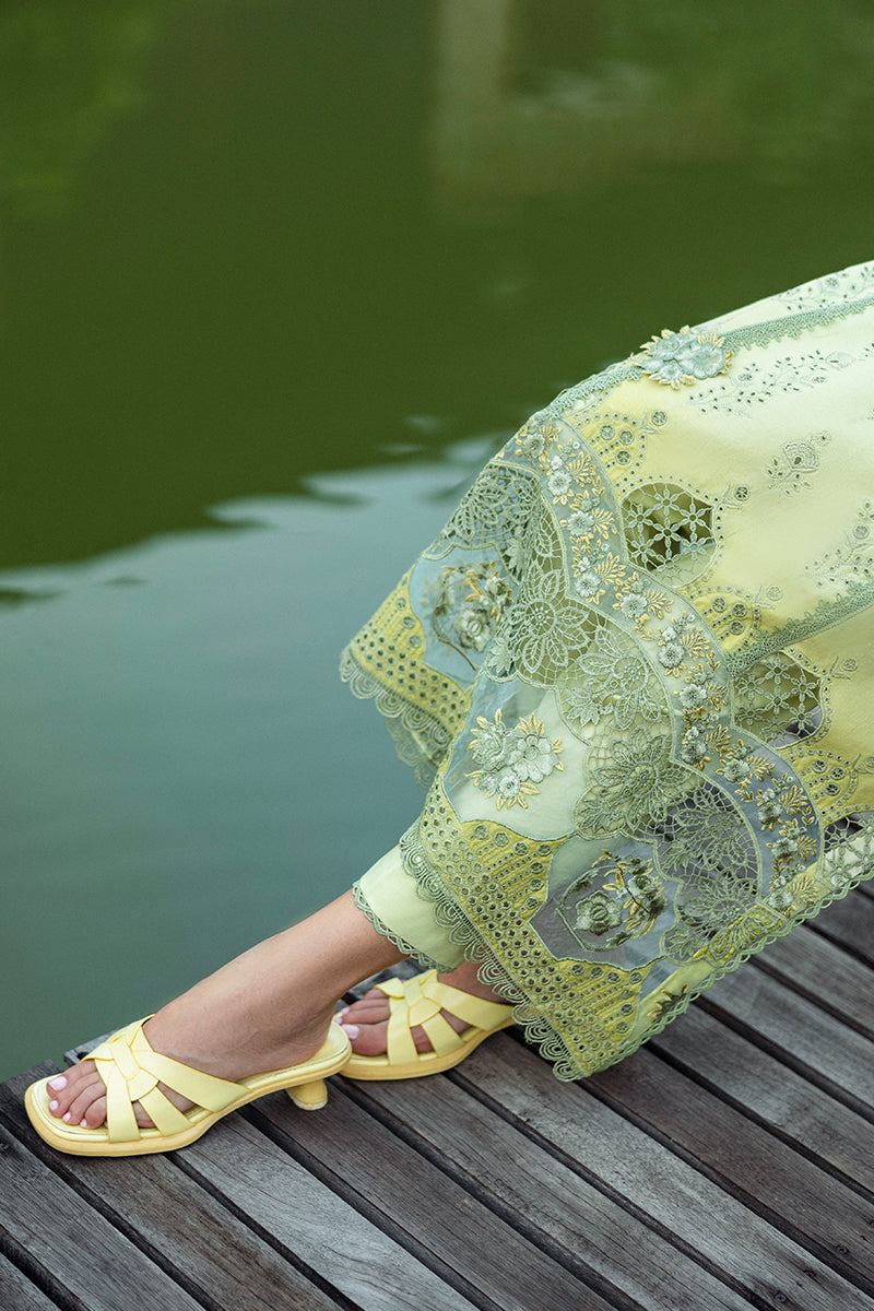 All laces used for finishing of the stitched outfit especially the dupatta or trousers may vary from the shoot.