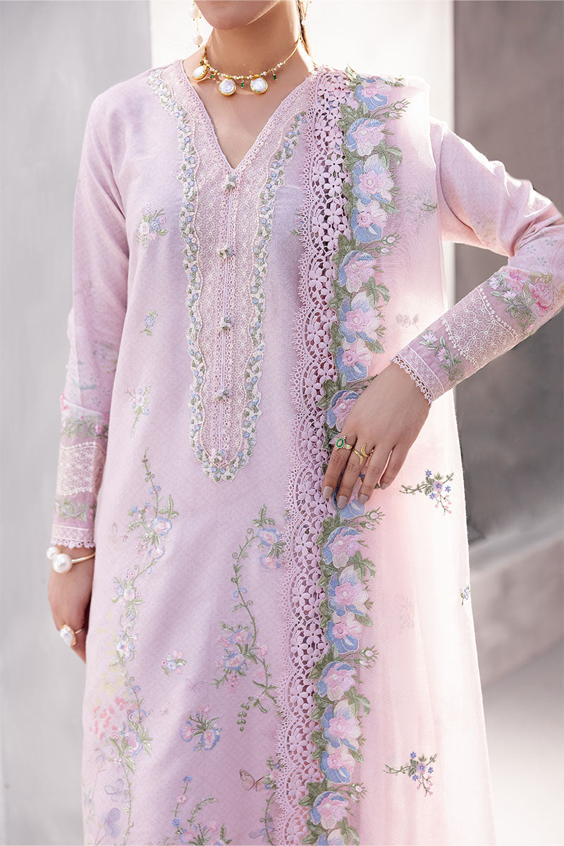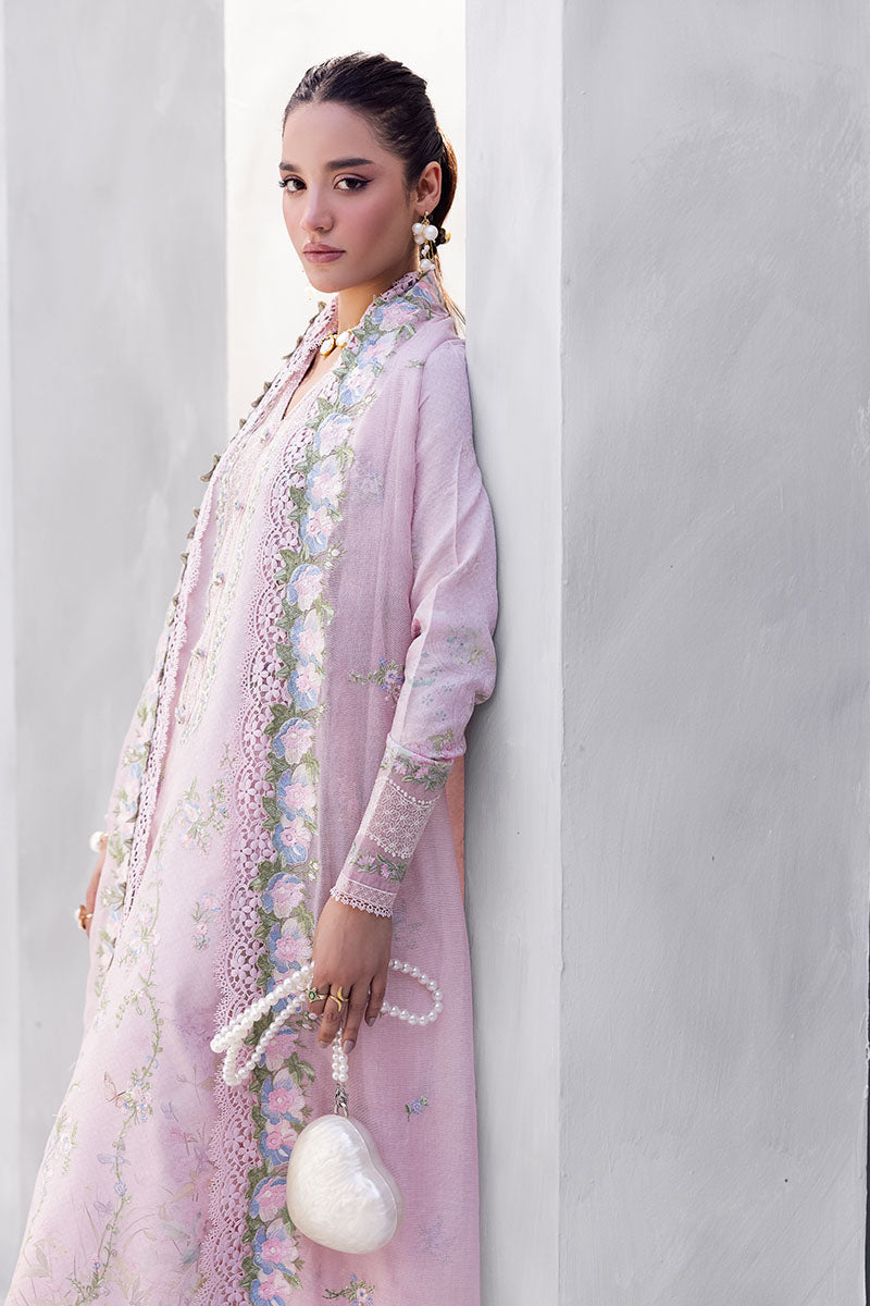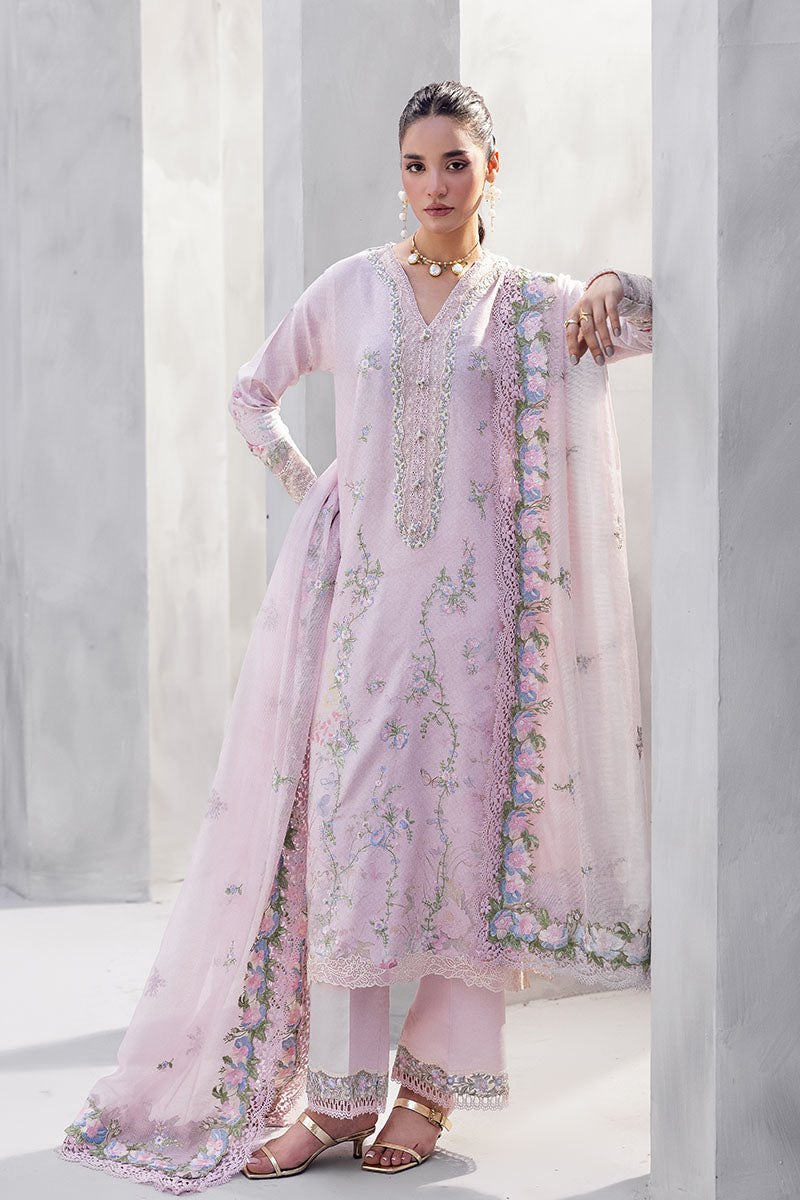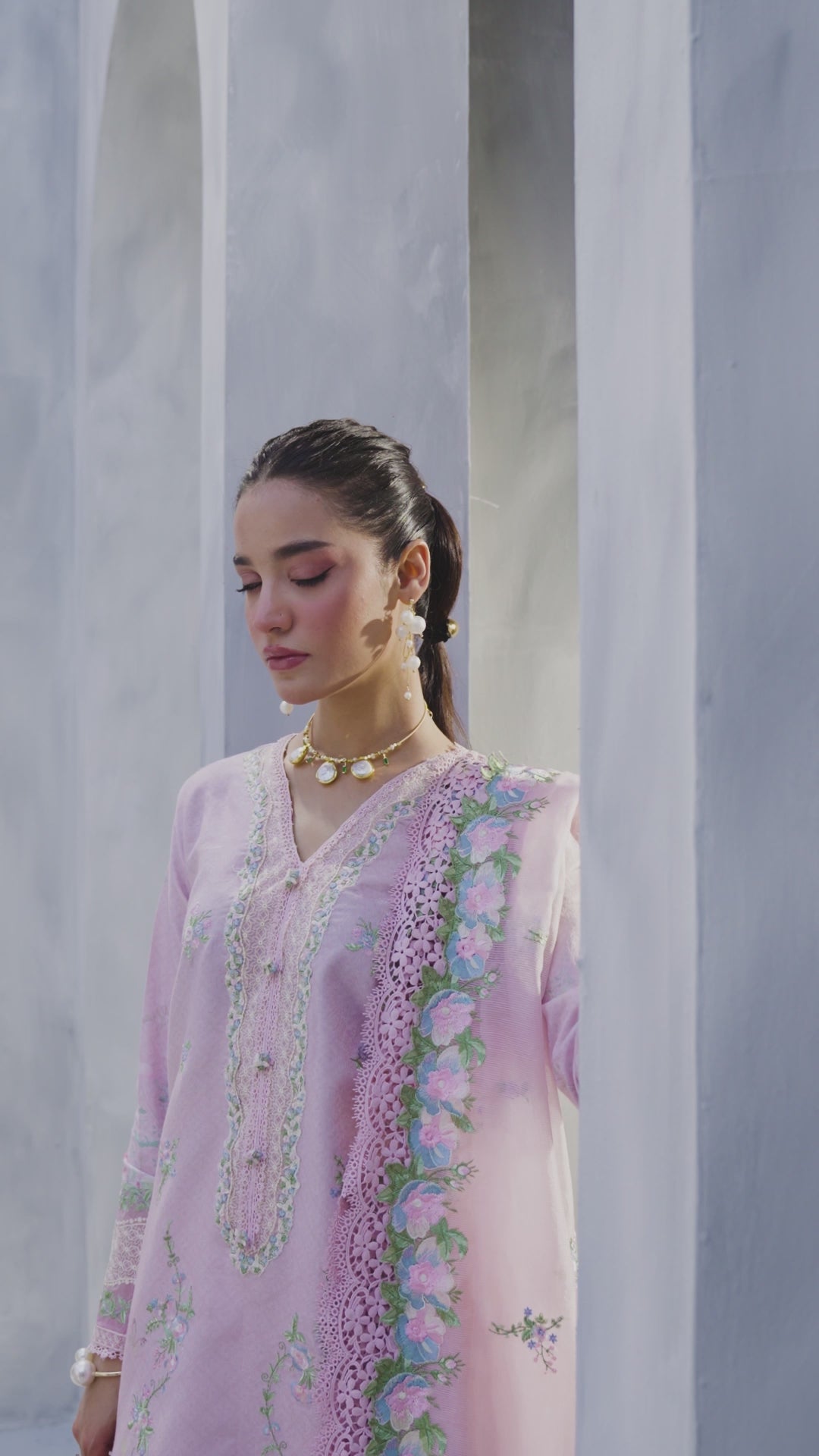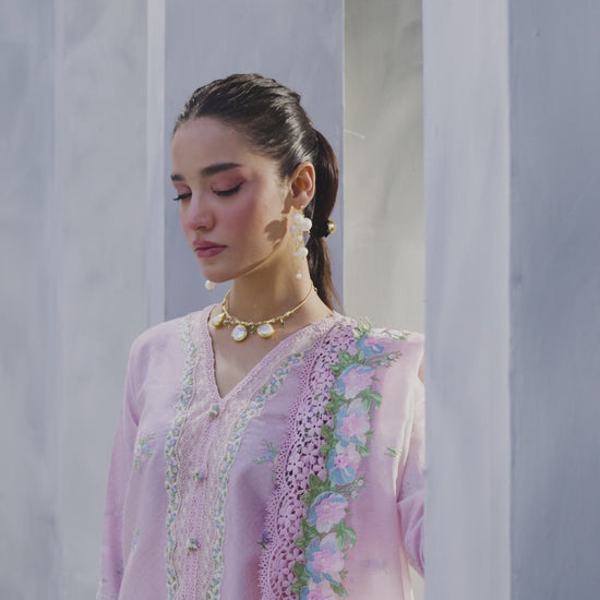 Waliya — soft, graceful, and effortlessly refined. Rendered in a delicate light pink hue, this embroidered lawn suit features intricate detailing and an exquisite design crafted for understated elegance. Paired with a beautifully dyed rocket net dupatta framed with a detailed border, Waliya is a timeless summer essential that blends tradition with effortless charm.