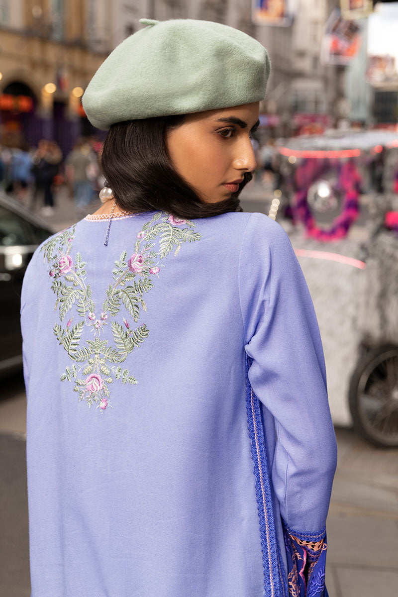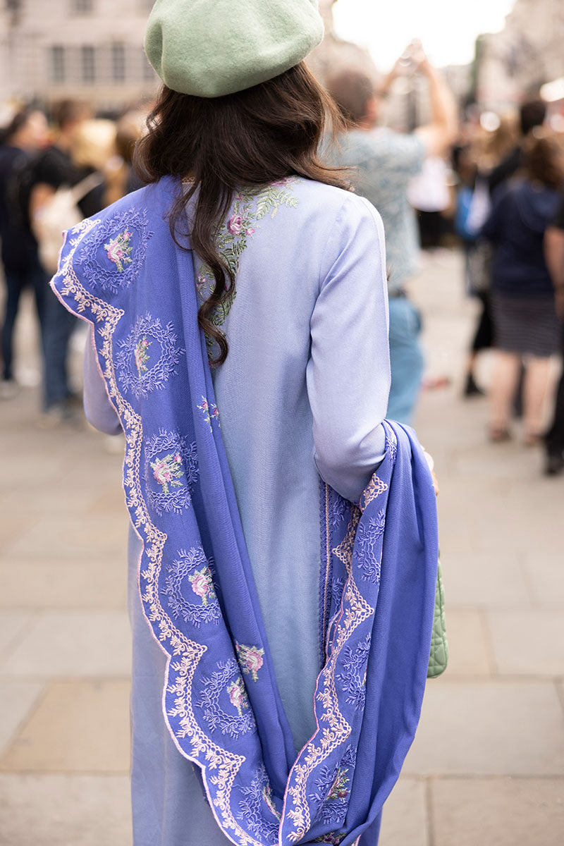 Embrace the sophistication of the city lights with our "West End Wool" ensemble, a masterpiece that marries tradition and contemporary elegance. The embroidered karandi shirt, adorned with intricate silk applique on the front, exudes timeless charm and artistic allure. Paired with an embroidered karandi shawl featuring delicate crochet lace finishings, this ensemble is a celebration of exquisite craftsmanship and refined style.