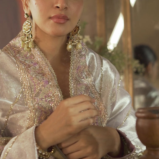 Experience the allure of our silk masterpiece intricately detailed with stunning beadwork and meticulous threadwork. Each stitch reflects artisanal craftsmanship, weaving a narrative of elegance and sophistication, adding a touch of timeless charm to your ensemble.
